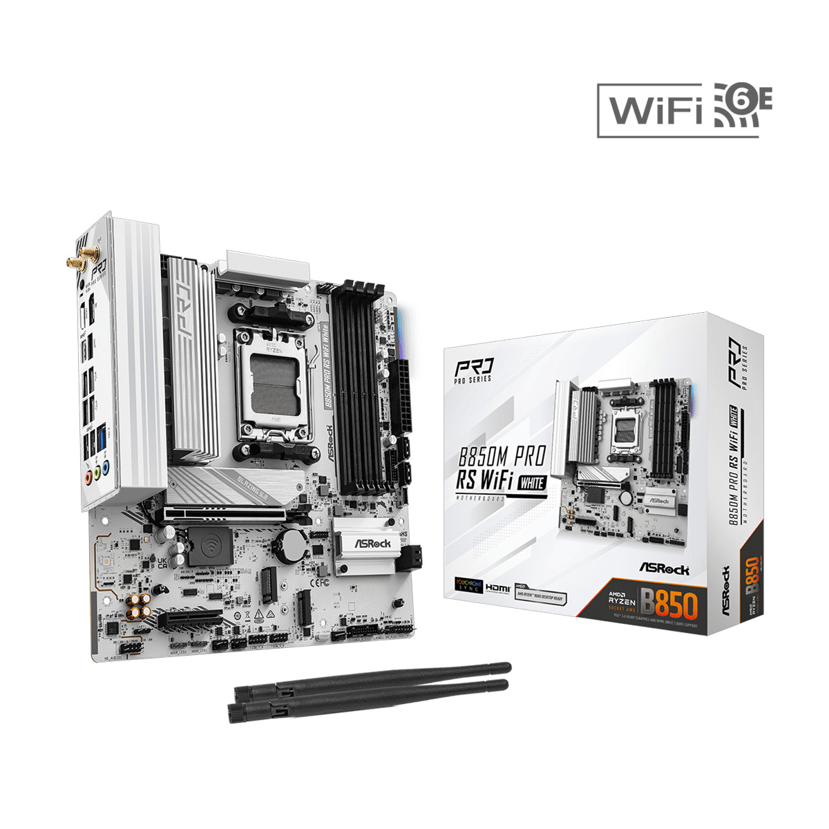 Socket AM5 - AMD B850 Chipset - 2x DDR5, 2x M.2 - WIFI - mATX - White