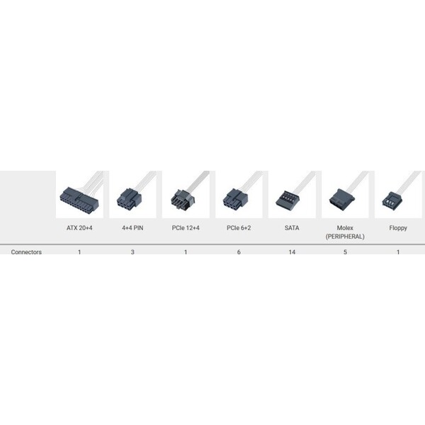 | : | >92% (Manufacturer), 91.28% (80 PLUS, 115V), 89.79% (Cybenetics, 115V), 91.99% (Cybenetics, 230V) | average-efficiency |