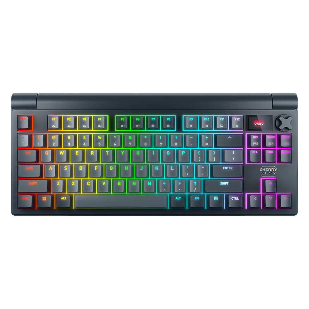 CHERRY XTRFY MX 8.3 TKL Tenkeyless (80%) Wireless Mechanical Gaming Keyboard, LCD Display, Rotary Knob, Hot Swappable MX2A Red Switches, Starfall Grey - RF, Bluetooth, USB-A, Hebrew/English - 4K (Wireless), 8K (Wired) - G80-3883HJAUS-22